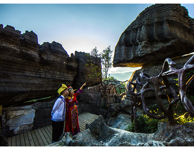梭布垭石林拥有大小共100多个经典的自然景观,开放的有青龙台、莲花寨、磨子沟、九龙汇四大景区,每个景区各具特色,景区内独特的“溶纹”、“戴冠”景观,是一大亮点,狭缝秘境、化石古迹随处可见,堪称一座远古地质博物馆。