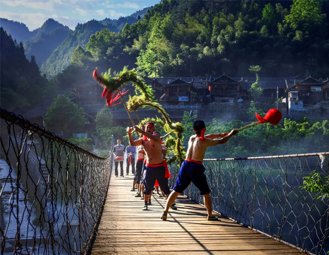 彭家寨坐落在湖北恩施土家族苗族自治州武陵山北麓的彭家寨。全寨50多户近300口人,均系土家族。彭家寨山清水秀,人杰地灵,古色古香,如同一颗璀璨的明珠,闪烁在宣恩县西南边陲。 彭家寨旅游景区以全国重点文物保护单位彭家寨吊脚楼群为核心,以建筑艺术和土家文化为灵魂,以传统村落和旅游为载体,集土家文化研究、建筑艺术展示、国际学术交流、农耕文化体验、沉浸式演出、康养休闲等项目为一体,通过活化、再生,展示了土家人的生产生活场景。