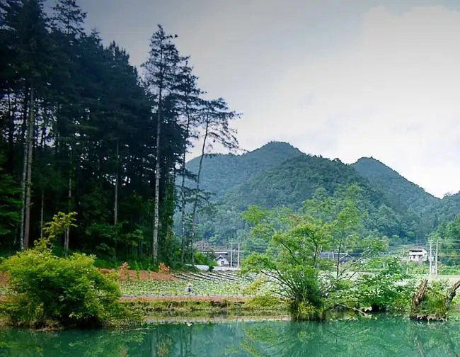 地处湖北省鹤峰县燕子乡的董家村距县城42km,这里平均海拔1400多米。董家河因董家村而得名,源于宜昌市五峰县牛庄、经过山间-井水库、归于桃花山水电站的小河,几次进入伏流,长达20多公里。两岸有“三狮赶象”、“九龟寻母”、山间飞瀑、田园村舍、溶洞奇观、古树名木和庙宇遗址、风雨桥等景观。环山的森林植被和雨后村庄,烟雨蒙蒙,让人流连忘返。董家村田畴平整,交通纤陌;土家民居特色鲜明,民风淳朴,童叟呼应,鸡犬相闻。清代诗人顾彩在《容美纪游》中称赞这一带为“古桃源”。董家河犹如一位娴静的少妇,拖着长长的绿纱裙,幽雅地穿过村庄,款款而行。